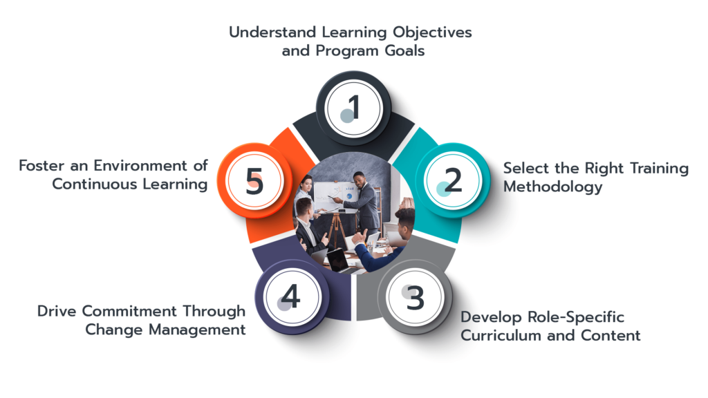 Training methodologies like classroom, online, or blended learning suit different contexts. Classroom training is best for complex skills, while e-learning works for basic conceptual understanding. Blended learning combining both offers flexibility. Additionally, focuses on experiential learning through hands-on projects, simulations, and on-the-job training. Gamify learning wherever possible through competitions and leaderboards. Leverage engaging multimedia, interactive sessions, and self-paced modules. Training should promote long-term behavioral changes, not just cognitive understanding.